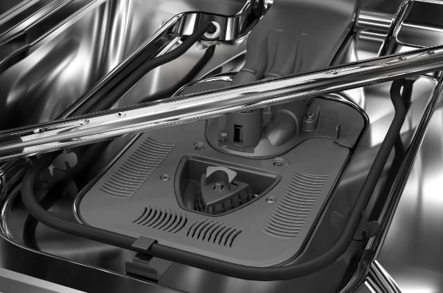 Uses microfiltration to continuously remove food particles during the wash and rinse cycles and circulates clean water to dishes in all three racks. This allows dirty cookware and delicate glassware to be washed together in the same load.